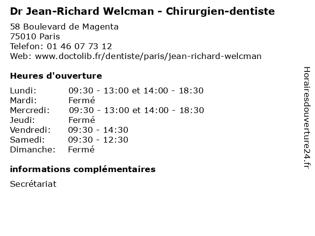 | Lundi | 09:30-13:00 et 14:00-18:30 |