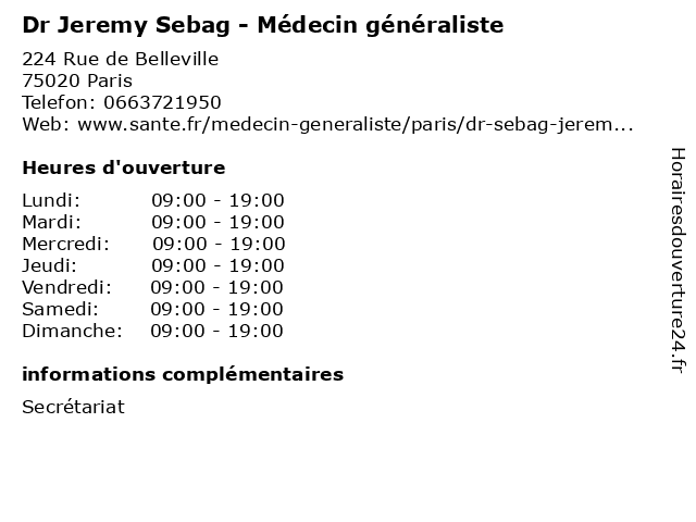 1 Dr Jeremy Sebag - Médecin généraliste (Distance: 17,01 km) 77 Rue Marie Curie, 77177 Brou-sur-Chantereine consultation, docteur, dr, généraliste, jeremy, med, médecin, sebag, traitement 2 Jeremy Gotainer - Pédicure-podologue (Distance: 0,53 km) 345 Rue des Pyrénées, 75020 Paris cheville, gotainer, jeremy, orteil, pied, podologue, pédicure 3 Dr Miryam Sebag - Pédiatre (Distance: 0,77 km) 7 Place Rhin et Danube, 75019 Paris consultation, docteur, dr, med, miryam, médecin, pédiatre, sebag, traitement 4 Thompson Jeremy (Distance: 1,00 km) 103 Avenue Du Belvedere, 93310 Le Pre Saint Gervais jeremy, restaurants, thompson 5 Dr Jeremy Dray - Chirurgien-dentiste (Distance: 1,19 km) 29-31 Rue Honoré d'Estienne d'Orves, 93310 Le Pré-Saint-Gervais chirurgien, dentaire, dentiste, dentition, docteur, dr, dray, jeremy 6 Dr Miryam Sebag - Pédiatre (Distance: 1,44 km) 13 Rue Rébeval, 75019 Paris consultation, docteur, dr, med, miryam, médecin, pédiatre, sebag, traitement |