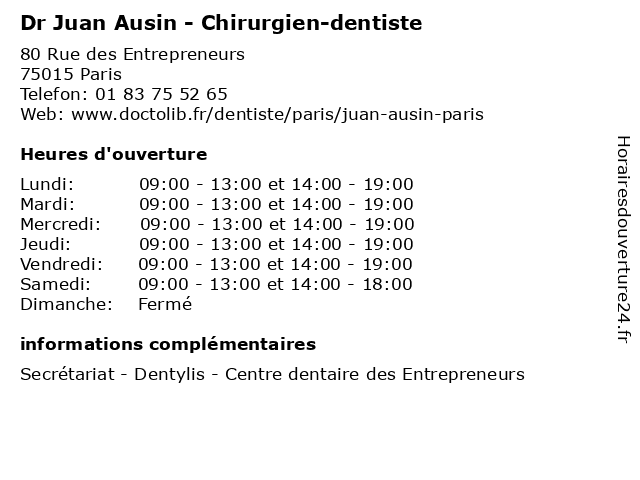 | Lundi | 09:00-13:00 et 14:00-19:00 |