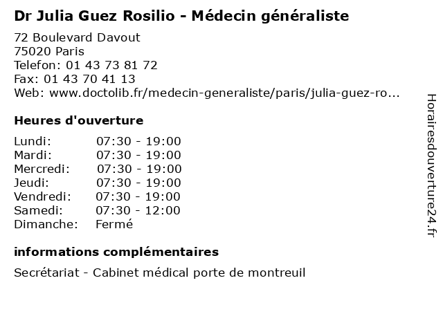 Termes de recherche pour Dr Julia Guez Rosilio - Médecin généraliste:soin, medical, julia, généraliste, docteur, médecin, dr, guez, rosilio |