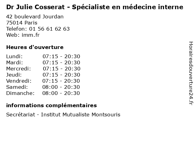 1 Dr Martine Gayraud - Spécialiste en médecine interne (Distance: 0,00 km) 42 boulevard Jourdan, 75014 Paris consultation, docteur, dr, en, gayraud, interne, martine, med, médecin, médecine, spécialiste, traitement 2 Dr Loïc Bodard - Spécialiste en médecine interne (Distance: 0,00 km) 42 boulevard Jourdan, 75014 Paris bodard, consultation, docteur, dr, en, interne, loïc, med, médecin, médecine, spécialiste, traitement 3 Dr Pierre Charles - Spécialiste en médecine interne (Distance: 0,00 km) 42 boulevard Jourdan, 75014 Paris charles, consultation, docteur, dr, en, interne, med, médecin, médecine, pierre, spécialiste, traitement 4 Dr Clémence Richaud - Spécialiste en médecine interne (Distance: 0,00 km) 42 boulevard Jourdan, 75014 Paris clémence, consultation, docteur, dr, en, interne, med, médecin, médecine, richaud, spécialiste, traitement 5 L'Institut Mutualiste Montsouris - L’inscription en maternité (Distance: 0,02 km) 42 Boulevard Jourdan, 75014 Paris bureau, consultation, dr, en, l'institut, la maladie, la médecine, la pratique, l’inscription, maternité, med, montsouris, mutualiste, médecin, thérapie, traitement 6 L'Institut Mutualiste Montsouris - Chirurgie vasculaire (en urgence) (Distance: 0,02 km) 42 Boulevard Jourdan, 75014 Paris bureau, chirurgie, consultation, dr, en, l'institut, la maladie, la médecine, la pratique, med, montsouris, mutualiste, médecin, thérapie, traitement, urgence, vasculaire |
