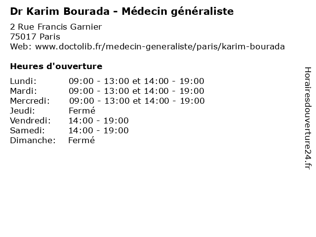 | Mardi | 09:00-13:00 et 14:00-19:00 |