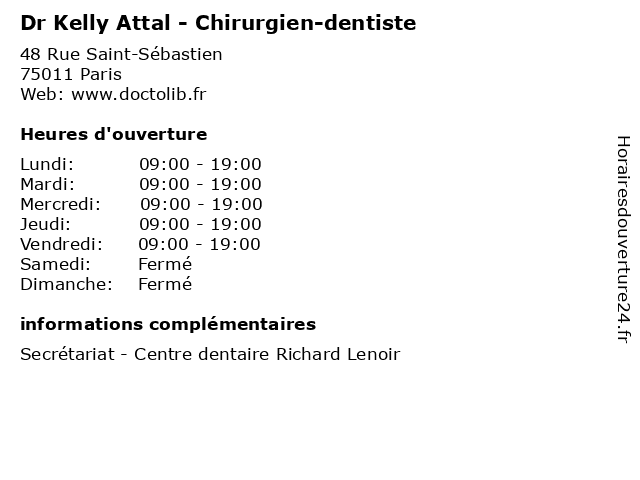 1 Dr Kelly Attal - Chirurgien-dentiste (Distance: 2,38 km) 46 Rue des Orteaux, 75020 Paris attal, chirurgien, dentiste, dr, kelly, médecin, médecine, médical, pharmaceutique, traitement 2 Dr Dina Attal - Chirurgien-dentiste (Distance: 0,93 km) 137 Rue du Faubourg du Temple, 75010 Paris attal, chirurgien, consultation, dentiste, dina, docteur, dr, med, médecin, traitement 4 Dr Bernard Attal - Ophtalmologue (Distance: 1,54 km) 4 Rue du Renard, 75004 Paris attal, bernard, consultation, docteur, dr, dr., ophtalmologie, ophtalmologue, santé 5 Maître Anne O Kelly Monbet - Avocate (Distance: 2,56 km) 52 Rue de Richelieu, 75001 Paris anne, avocate, avocats, cabinet, conseils, contentieux, juridique, justice, kelly, litiges, maître, monbet, services 6 |