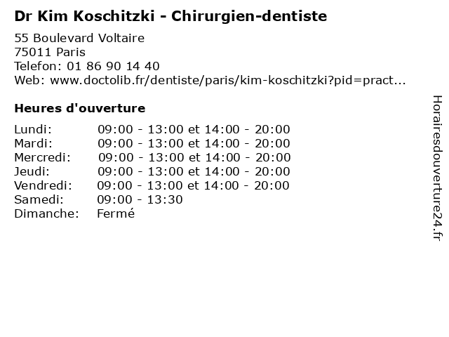 | Lundi | 09:00-13:00 et 14:00-20:00 |