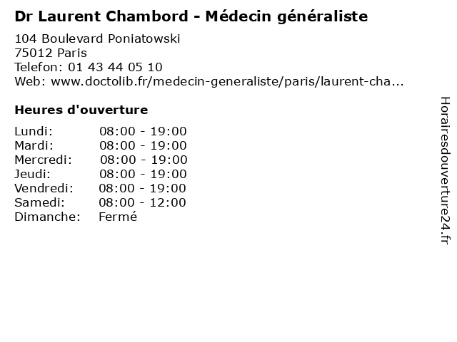 1 Dr Laurent Luchon - Pneumologue (Distance: 0,35 km) 52 Avenue du Général Michel Bizot, 75012 Paris consultation, docteur, dr, laurent, luchon, med, médecin, médecine, pneumologue, secrétariat, traitement 2 Dufour Laurent Marc Marcel (Distance: 0,72 km) Batiment a, 94220 Charenton Le Pont catalogue, correspondance, dufour, laurent, maisons, marc, marcel, vente 3 Dr Romain Laurent - Chirurgien infantile (Distance: 0,87 km) 26 Avenue du Docteur Arnold Netter, 75012 Paris chirurgien, docteur, dr, infantile, laurent, médecin, romain 4 Office de Tourisme de Blois-Chambord (Distance: 1,15 km) 5 rue de la Voûte, 41000 Blois blois, chambord, de, guide, information, office, séjour, tourisme 5 Maître Laurent Gamet - Avocat (Distance: 1,48 km) 61 rue de Bercy, 75012 Paris avocat, avocats, cabinet, conseils, contentieux, gamet, juridique, justice, laurent, litiges, maître, services 6 Dr Laurent Coussirou - Anesthésiste (Distance: 1,53 km) 12-18 rue du Sergent Bauchat, 75012 Paris anesthésiste, consultation, coussirou, docteur, dr, laurent, med, médecin, médecine, traitement |