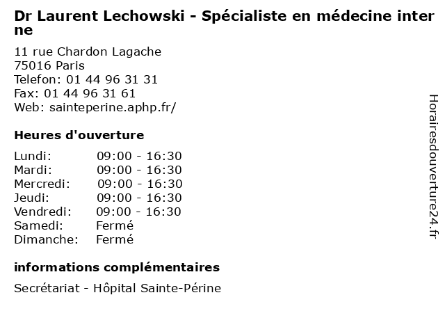 | Lundi | 09:00-16:30 |