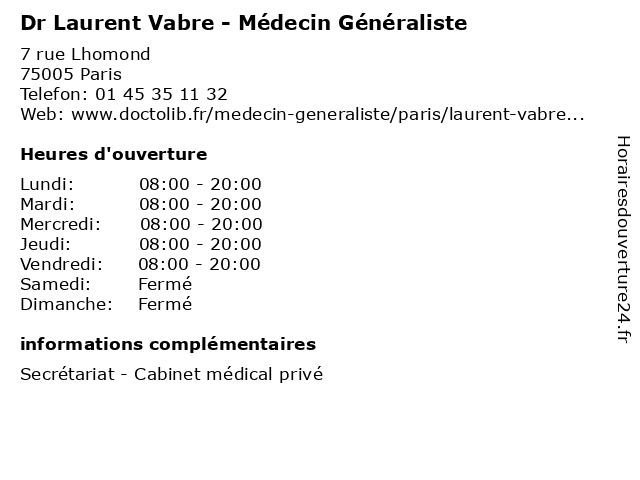 Termes de recherche pour Dr Laurent Vabre - Médecin Généraliste:paris, laurent, cabinet, medical, privé, généraliste, vabre, médecin, dr, 75005 |