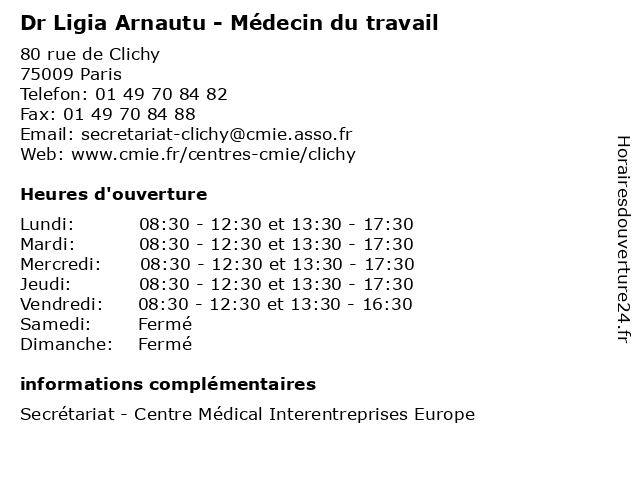 1 Dr Pierre Forget - Médecin du travail (Distance: 0,00 km) 80 rue de Clichy, 75009 Paris consultation, docteur, dr, du, forget, med, médecin, pierre, traitement, travail 2 Dr Shainaze Kadayer - Médecin du travail (Distance: 0,00 km) 80 rue de Clichy, 75009 Paris consultation, docteur, dr, du, kadayer, med, médecin, shainaze, traitement, travail 3 Dr Laura Lippi - Médecin du travail (Distance: 0,00 km) 80 rue de Clichy, 75009 Paris consultation, docteur, dr, du, laura, lippi, med, médecin, traitement, travail 4 Dr Yveline Sergere - Médecin du travail (Distance: 0,00 km) 80 rue de Clichy, 75009 Paris consultation, docteur, dr, du, med, médecin, sergere, traitement, travail, yveline 5 Dr Vassilena Boutchkova - Médecin du travail (Distance: 0,00 km) 80 rue de Clichy, 75009 Paris boutchkova, consultation, docteur, dr, du, med, médecin, traitement, travail, vassilena 6 ACMS - Centre de Santé au Travail (Distance: 0,19 km) 15B Rue Ballu, 75009 Paris a.c.m.s, acms, au, bilans, centre, de, santé, travail |