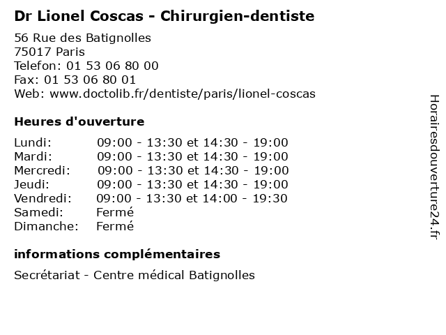 | Lundi | 09:00-13:30 et 14:30-19:00 |