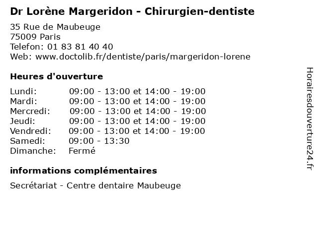 | Lundi | 09:00-13:00 et 14:00-19:00 |