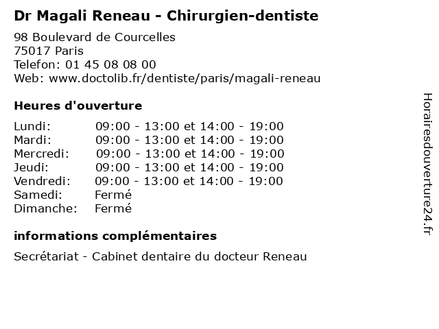 | Mardi | 09:00-13:00 et 14:00-19:00 |