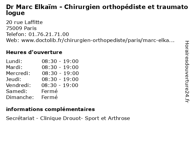 1 Dr Yves Catonné - Chirurgien orthopédiste (Distance: 0,00 km) 20 rue Laffitte, 75009 Paris catonne, catonné, chirurgien, consultation, docteur, dr, med, médecin, médecine, orthopédiste, traitement, yves 2 Dr Antoine Roul - Chirurgien orthopédiste et traumatologue (Distance: 0,00 km) 20 Rue Laffitte, 75009 Paris antoine, chirurgien, dr, et, orthopédiste, roul, traumatologue 3 Docteur Xavier Deloin - Chirurgien orthopédiste et traumatologue (Distance: 0,00 km) 20 Rue Laffitte, 75009 Paris chirurgie, chirurgien, consultation, deloin, docteur, et, médecins, orthopédique, orthopédiste, rendez, santé, sur, traumatologue, vous, xavier 4 Dr Marc Zemirline - Oto-rhino-laryngologiste (Distance: 0,14 km) 2 Boulevard Haussmann, 75009 Paris consultation, docteur, dr, laryngologiste, marc, med, médecin, médecine, oto, rhino, secrétariat, traitement, zemirline 5 Dr Pierre Cohen - Chirurgien orthopédiste et traumatologue (Distance: 0,14 km) 2 Boulevard Haussmann, 75009 Paris chirurgien, cohen, consultation, docteur, dr, et, med, médecin, médecine, orthopédiste, pierre, secrétariat, traitement, traumatologue 6 |