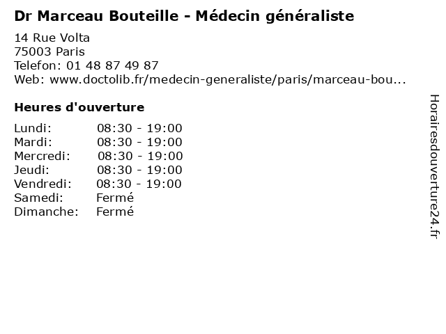1 Dr Marceau Bouteille - Médecin généraliste (Distance: 2,63 km) 3 Rue de l'Épée de Bois, 75005 Paris bouteille, consultation, docteur, dr, généraliste, marceau, med, médecin, traitement 2 Dr Marceau Bouteille - Médecin généraliste (Distance: 2,86 km) 22 Rue Marcadet, 75018 Paris bouteille, consultation, docteur, dr, généraliste, marceau, med, médecin, traitement 3 G34.3 - L'Univers en Bouteille (Distance: 0,36 km) 34 Rue du Grenier-Saint-Lazare, 75003 Paris alcool, boissons, bouteille, cave, caviste, en, g34.3, l'univers, vente, vignerons 4 Maître Marceau Perdereau - Avocat (Distance: 0,90 km) 36 rue Étienne Marcel, 75002 Paris avocat, justice, lois, maitre, marceau, maître, perdereau 6 Pharmacie marceau (Distance: 4,22 km) 7 avenue Marceau, 75016 Paris cosmétiques, marceau, médicaments, pharmacie |