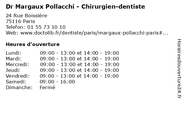 | Lundi | 09:00-13:00 et 14:00-19:00 |