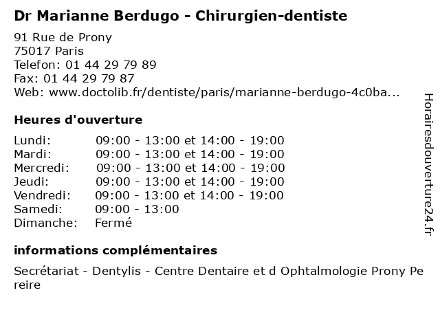 1 Dr Marianne Berdugo - Chirurgien-dentiste (Distance: 4,15 km) 30 Rue Olympe de Gouges, 92600 Asnières-sur-Seine berdugo, chirurgien, consultation, dentiste, docteur, dr, marianne, med, médecin, traitement 2 Maître Eva Berdugo - Avocate (Distance: 0,26 km) 7 Rue Théodore de Banville, 75017 Paris avocate, avocats, berdugo, cabinet, conseils, contentieux, eva, juridique, justice, litiges, maître, services 3 Vanessa Berdugo - Sage-femme (Distance: 0,36 km) 8 Rue Gustave Doré, 75017 Paris berdugo, de, femme, grossesse, la, maternité, naissance, préparation, sage, suivi, vanessa 4 Maître Marianne Leloup - Avocate (Distance: 0,40 km) 14 Rue Margueritte, 75017 Paris avocate, avocats, cabinet, conseils, contentieux, juridique, justice, leloup, litiges, marianne, maître, services 5 Berdugo Fabrice - Vétérinaire (Distance: 0,61 km) 183 boulevard Pereire, 75017 Paris berdugo, fabrice, informations nutritionnelles, les, paris, soins, vétérinaire, vétérinaires 6 Maître Marianne Ansart - Avocate (Distance: 0,62 km) 86 rue Laugier, 75017 Paris ansart, avocate, avocats, cabinet, conseils, contentieux, juridique, justice, litiges, marianne, maître, services |