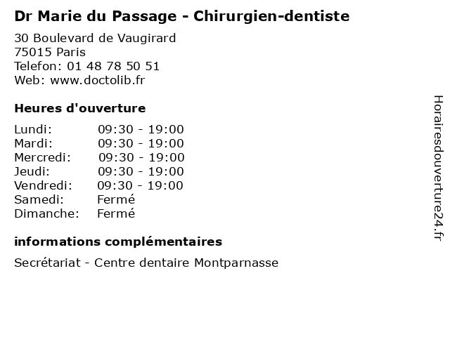 1 Dr Marie Du Passage - Chirurgien-dentiste (Distance: 2,30 km) 48 Rue des Entrepreneurs, 75015 Paris chirurgien, consultation, dentiste, docteur, dr, du, marie, med, médecin, passage, traitement 2 Dr Marie du Passage - Chirurgien-dentiste (Distance: 7,87 km) 128 Boulevard Macdonald, 75019 Paris centre, chirurgien, dentaire, dentiste, dr, du, implantologie, macdonald, marie, parodontologie, passage 3 Dr Marie Du Passage - Chirurgien-dentiste (Distance: 13,97 km) 32 Rue du Maréchal Foch, 78000 Versailles chirurgien, consultation, dentiste, docteur, dr, du, marie, med, médecin, passage, traitement 4 Passage Bleu (Distance: 2,75 km) 12 De Linois, 75015 Paris beaute, bleu, cafe, chaussures, enfants, mode femmes, mode hommes, passage, restaurant, sport 5 Passage Puteaux (Distance: 3,53 km) 33 rue de l’Arcade, 75008 Paris artisanat, boutique, commerces, passage, puteaux, touristique, visite 6 Le Passage Immobilier (Distance: 4,34 km) 16 Rue Béranger, 75003 Paris gestion, immobilier, le, lepassage, location, marchandises, passage, transaction, vente |