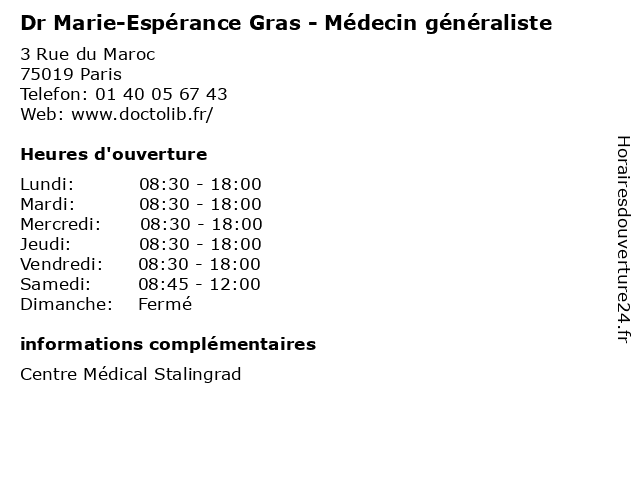 1 Dr. Gras - Médecine Generale (Distance: 0,08 km) 17-19 Avenue de Flandre, 75954 Paris docteur, dr., generale, gras, medecins, médecine, sante 2 Dr Domitille Gras - Pédiatre (Distance: 2,55 km) 48 boulevard Sérurier, 75019 Paris consultation, docteur, domitille, dr, gras, med, médecin, pédiatre, traitement 3 Foie Gras Luxe (Distance: 3,00 km) 26 Rue Montmartre, 75001 Paris charcuterie, foie, fromages affinés, fromages frais, gras, luxe, ravioli et pâtes, Épicerie 4 Dr Astrid Gras - Médecin généraliste (Distance: 6,41 km) 25 Boulevard Saint-Jacques, 75014 Paris astrid, consultation, docteur, dr, gras, généraliste, med, médecin, médecine, secrétariat, traitement 5 Gras Savoye Assurances (Distance: 9,16 km) 33 Quai de Dion Bouton, 92800 Puteaux agents, assurance, assurances, courtiers, gras, savoye, services 6 Gras Savoye - Willis Towers Watson (Distance: 9,16 km) 33-34 quai de Dion Bouton, 92800 Puteaux agents, assurance, assurances, courtiers, gestion, gras, savoye, towers, watson, willis |