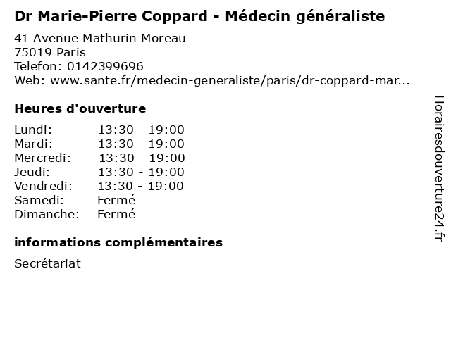 | Mercredi | 13:30-19:00 |