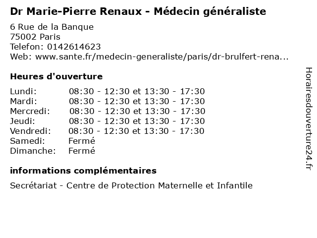 1 Dr Marie-Pierre Renaux - Médecin généraliste (Distance: 1,17 km) 3 Rue Choron, 75009 Paris consultation, docteur, dr, généraliste, marie, med, médecin, pierre, renaux, traitement 2 Dr Marie-Pierre Renaux - Médecin généraliste (Distance: 1,29 km) 2 bis rue au Maire, 75003 Paris consultation, docteur, dr, généraliste, marie, med, médecin, pierre, renaux, traitement 3 Dr Marie-Pierre Renaux - Médecin généraliste (Distance: 1,48 km) 3 square Alban Satragne, 75010 Paris consultation, docteur, dr, généraliste, marie, med, médecin, pierre, renaux, traitement 4 Dr Marie-Pierre Renaux - Médecin généraliste (Distance: 1,53 km) 2 rue de Moussy, 75004 Paris consultation, docteur, dr, généraliste, marie, med, médecin, pierre, renaux, traitement 5 Dr Marie-Pierre Renaux - Médecin généraliste (Distance: 2,60 km) 55 rue de l'Aqueduc, 75010 Paris consultation, docteur, dr, généraliste, marie, med, médecin, pierre, renaux, traitement 6 Maître Florian Renaux - Avocat (Distance: 2,00 km) 23 Rue de Madrid, 75008 Paris avocat, avocats, cabinet, conseils, contentieux, florian, juridique, justice, litiges, maître, renaux, services |