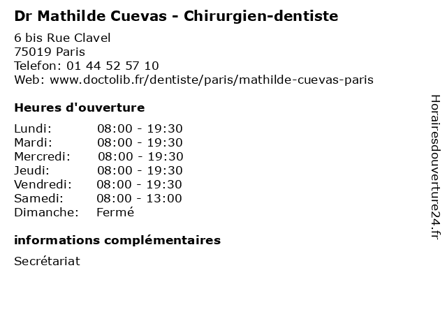 | Lundi | 08:00-19:30 |