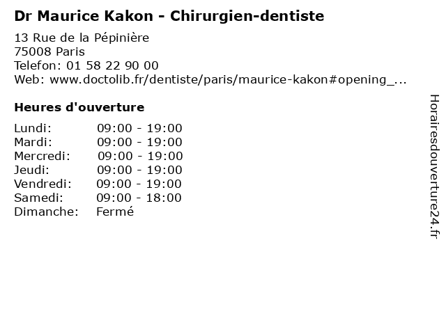 1 Dr Maurice Casenave - Chirurgien-Dentiste (Distance: 0,55 km) 9 Rue Boudreau, 75009 Paris casenave, chirurgien, consultation, dentiste, docteur, dr, maurice, med, médecin, traitement 2 Maître Marion Maurice - Avocate (Distance: 0,57 km) 40/42 rue la Boétie, 75008 Paris avocate, avocats, cabinet, conseils, contentieux, juridique, justice, litiges, marion, maurice, maître, services 3 Dr Maurice Benjoar - Chirurgien-dentiste (Distance: 0,91 km) 29 Rue Taitbout, 75009 Paris benjoar, chirurgien, dentaire, dentiste, dr, implantologie, maurice, parodontologie 4 Restaurant l'Ile Maurice (Distance: 0,98 km) 61 Rue Des Dames, 75017 Paris ile, l'ile, maurice, restaurant, restaurants, samm 5 Dr Maurice Moutot - Médecin généraliste (Distance: 1,50 km) 21 Rue Balzac, 75008 Paris consultation, docteur, dr, généraliste, maurice, med, moutot, médecin, médecine, traitement 6 Dr Bogdana Bodilcu Kakon - Gynécologue obstétricienne (Distance: 1,63 km) 27 Rue Brochant, 75017 Paris bebe, bodilcu, bogdana, dr, gynecologie, gynécologue, kakon, maternite, obstetrique, obstétricienne |