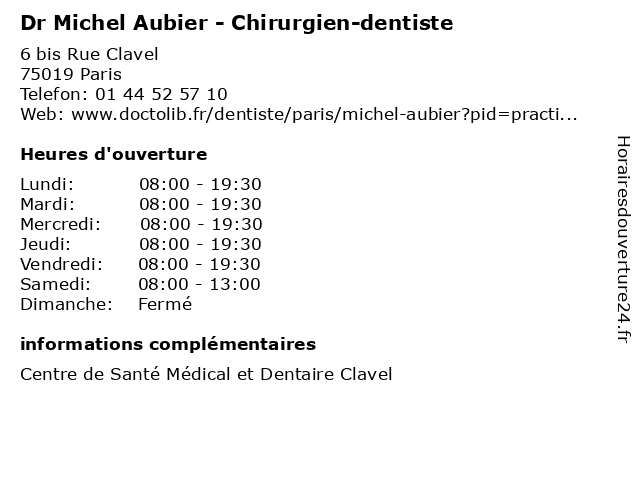 | Lundi | 08:00-19:30 |
