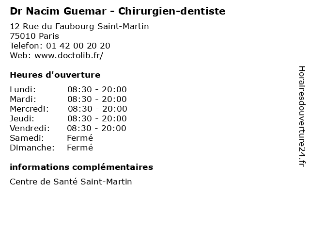 1 Nacim Benhamma - Pédicure-podologue (Distance: 2,33 km) 22 Rue Marcadet, 75018 Paris benhamma, consultation, docteur, med, médecin, médecine, nacim, podologue, pédicure, secrétariat, traitement 2 Nacim Benhamma - Pédicure-podologue (Distance: 4,56 km) 44 Rue Charles Moureu, 75013 Paris benhamma, médecin, médecine, médical, nacim, pharmaceutique, podologue, pédicure, traitement 3 Dr Nacim Guémar - Chirurgien-dentiste (Distance: 6,77 km) 39 Quai des Carrières, 94220 Charenton-le-Pont chirurgien, dentaire, dentiste, dr, guémar, implantologie, nacim, parodontologie 4 Nacim Terfaia - Masseur-kinésithérapeute (Distance: 7,93 km) 10 Rue Félix Faure,, 92270 Bois-Colombes docteur, kine, kinesitherapeute, kinésithérapeute, masseur, nacim, terfaia 5 Dahoumane Nacim (Distance: 9,58 km) 110 Route De Saint Leu, 93430 Villetaneuse dahoumane, nacim, restaurants 6 Nacim Benhamma - Pédicure-podologue (Distance: 9,74 km) 59 Rue des Chênes, 92150 Suresnes benhamma, nacim, orthoplastie, podologue, pédicure, pédicurie |