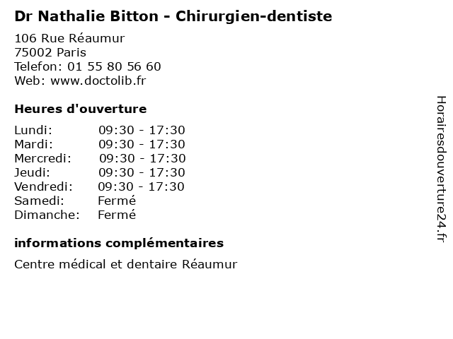 1 Dr Nathalie Bitton - Chirurgien-dentiste (Distance: 4,34 km) 27 Rue Letellier, 75015 Paris bitton, chirurgien, consultation, dentiste, docteur, dr, med, médecin, nathalie, traitement 2 Dr Nathalie Morel - Médecin généraliste (Distance: 0,00 km) 106 Rue Réaumur, 75002 Paris dr, généraliste, morel, médecin, médecine, médical, nathalie, pharmaceutique, traitement 3 Dr Colette Bitton - Gynécologue obstétricienne (Distance: 0,39 km) 11 Rue du Faubourg Poissonnière, 75009 Paris bitton, colette, consultation, docteur, dr, gynécologue, med, médecin, obstétricienne, traitement 4 Maître Ariel Bitton - Avocat (Distance: 0,46 km) 54 Rue Étienne Marcel, 75002 Paris ariel, avocat, avocats, bitton, cabinet, conseils, contentieux, juridique, justice, litiges, maître, services 5 Nathalie Garçon (Distance: 0,56 km) 5 Rue de la Banque, 75002 Paris boudoirs. galerie, boutique, garçon, nathalie 6 Nathalie Melscoet - Notaire (Distance: 0,62 km) 5 Rue De La Bourse, 75002 Paris etude, huissier, justice, maitre, melscoet, nathalie, notaire, notaires |