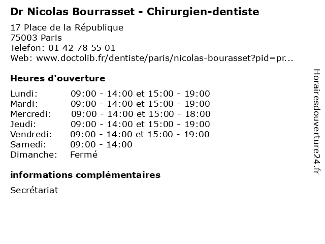 | Mercredi | 09:00-14:00 et 15:00-18:00 |