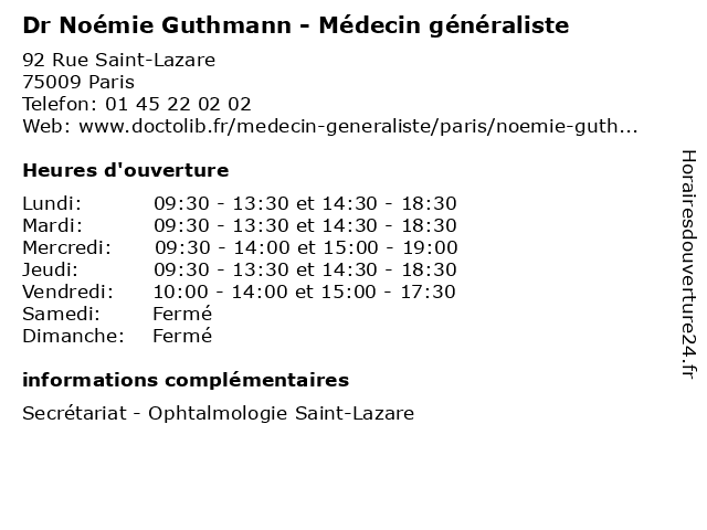| Vendredi | 10:00-14:00 et 15:00-17:30 |
