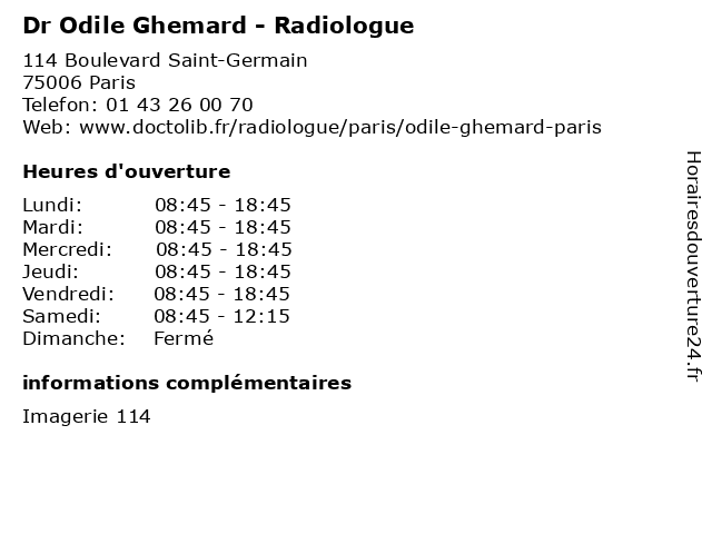 1 Dr Odile Ghemard - Radiologue (Distance: 0,00 km) 114 Boulevard Saint-Germain, 75006 Paris dr, ghemard, médecin, médecine, médical, odile, pharmaceutique, radiologue, secretariat, traitement 2 Dr Odile Ghemard - Radiologue (Distance: 0,00 km) 114 Boulevard Saint-Germain, 75006 Paris dr, ghemard, médecin, médecine, médical, odile, pharmaceutique, radiologue, secretariat, traitement 3 Dr Odile Ghemard - Radiologue (Distance: 1,95 km) 102 Avenue Denfert Rochereau, 75014 Paris consultation, docteur, dr, ghemard, med, médecin, odile, radiologue, traitement 4 Dr Odile Ghemard - Radiologue (Distance: 3,29 km) 119 Avenue du Général Leclerc, 75014 Paris consultation, docteur, dr, ghemard, med, médecin, odile, radiologue, traitement 5 Medecin Odile Champart Curie (Gériatre) (Distance: 1,78 km) 28 Barbet de Jouy, 75007 Paris champart, curie, docteur, gériatre, medecin, odile, sante, services 6 Medecin Odile Champart Curie - Consultation a domicile (Gériatre) (Distance: 1,78 km) 28 Barbet de Jouy, 75007 Paris champart, consultation, curie, docteur, domicile, gériatre, medecin, odile, sante, services |