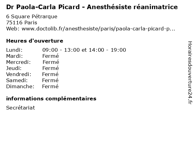 | Lundi | 09:00-13:00 et 14:00-19:00 |