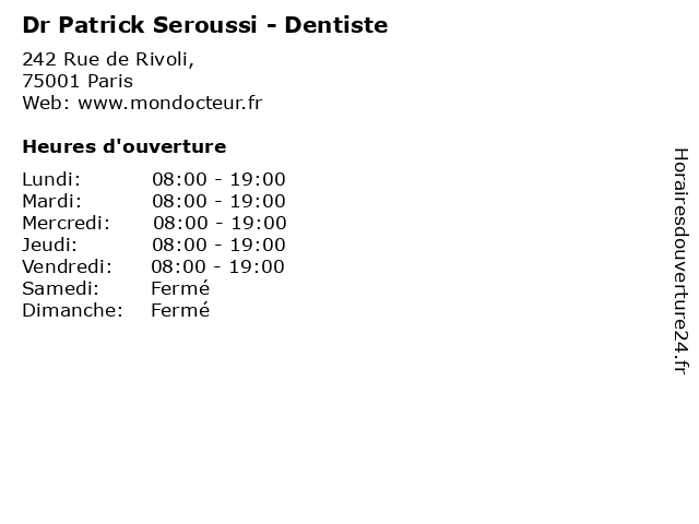 1 Dr Patrick-Pierre Sabatier - Médecin nutritionniste (Distance: 0,59 km) 54 Rue du Faubourg Saint-Honoré,, 75008 Paris dr, médecin, médecins, médicaments, nutritionniste, patrick, pierre, sabatier, santé, secrétariat, spécialiste 2 Dr Patrick Leteissier - Stomatologue (Distance: 0,61 km) 13 Avenue de l'Opéra, 75001 Paris consultation, docteur, dr, leteissier, med, médecin, médecine, patrick, secrétariat, stomatologue, traitement 3 Patrick Jancot - Ostéopathe (Distance: 0,66 km) 28 Rue Godot de Mauroy, 75009 Paris jancot, ostéo, ostéopathe, ostéopathes, patrick, soins 4 Dr Patrick Robinson - Psychiatre (Distance: 2,07 km) 36 Rue d'Assas, 75006 Paris consultation, docteur, dr, med, médecin, médecine, patrick, psychiatre, robinson, traitement 5 Dr Patrick Faulcon - ORL- Chirurgien de la face et du cou (Distance: 2,07 km) 36 Rue d'Assas, 75006 Paris chirurgien, consultation, cou, de, docteur, dr, du, et, face, faulcon, la, med, médecin, médecine, orl, patrick, traitement 6 Dr Patrick Feldhandler - Médecin généraliste (Distance: 2,19 km) 4 Rue des Dames, 75018 Paris docteur, dr, feldhandler, generaliste, généraliste, medical, médecin, patrick, soin |