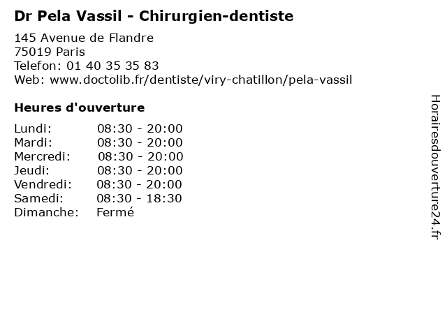 1 Dr Pela Vassil - Chirurgien-dentiste (Distance: 0,00 km) 145 Avenue de Flandre, 75019 Paris chirurgien, consultation, dentiste, docteur, dr, med, médecin, médecine, pela, secrétariat, traitement, vassil 2 Dr Pela Vassil - Chirurgien-dentiste (Distance: 0,00 km) 145 Avenue de Flandre, 75019 Paris chirurgien, chirurgien-dentiste, dentiste, dr, médecins, médicaments, pela, santé, secrétariat, spécialiste, vassil 3 Dr Pela Vassil - Chirurgien-dentiste (Distance: 0,00 km) 145 Avenue de Flandre, 75019 Paris chirurgien, chirurgien-dentiste, dentiste, dr, médecins, médicaments, pela, santé, secrétariat, spécialiste, vassil 4 Pelasimba Nicolas Afri Aimee Pela (Distance: 4,72 km) Delivery Xpress, 92110 Clichy afri, aimee, nicolas, pela, pelasimba, restaurants 5 Dr Stéphane Vassil - Chirurgien-dentiste (Distance: 11,42 km) 73 Avenue de Paris, 92320 Châtillon chirurgien, consultation, dentiste, docteur, dr, med, médecin, stéphane, traitement, vassil 6 Dr Cristina Maniga Sabau - Chirurgien-dentiste (Distance: 0,00 km) 145 Avenue de Flandre, 75019 Paris chirurgien, cristina, dentiste, dr, maniga, médecin, médecine, médical, pharmaceutique, sabau, traitement |