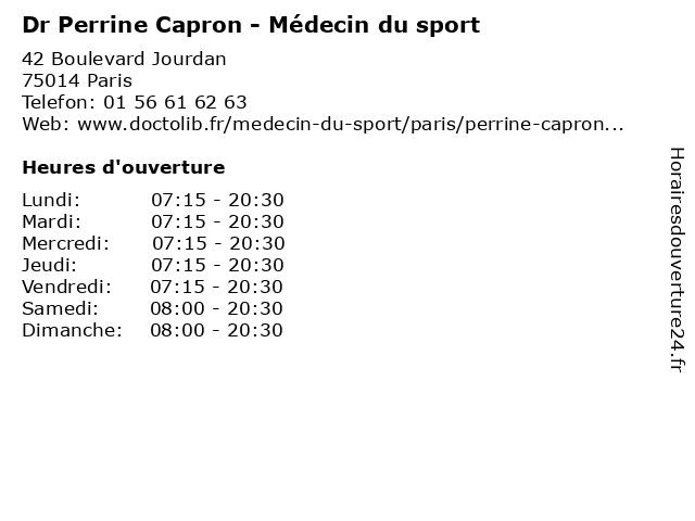 1 Dr Perrine Capron - Médecin du sport (Distance: 2,67 km) 34 bis Boulevard Saint-Marcel, 75005 Paris capron, docteur, dr, du, médecin, médecine, perrine, sport 2 Dr Frédéric Depiesse - Médecin du sport (Distance: 0,00 km) 42 Boulevard Jourdan, 75014 Paris consultation, depiesse, docteur, dr, du, frédéric, med, médecin, sport, traitement 3 Equip Sport Rental (Soccer) (Distance: 0,31 km) Rue Monticelli, 75014 Paris decathlon, equip, equip sport, equipment, location, rental, soccer, sport 4 Equip Sport Rental (Fitness) (Distance: 0,47 km) 7 Avenue Paul Appell, 75014 Paris decathlon, equip, equip sport, equipment, fitness, location, rental, sport 5 SHIZEN SPORT TRUCK (Distance: 0,58 km) 4 Avenue De La Sibelle, 75014 Paris organisateur d'événements, shizen, sport, séminaire, truck 6 Feel sport (Distance: 0,76 km) 4 rue theophile gautier, 92120 Montrouge centre, feel, feel sport, fiteness, sport |