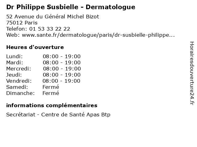 1 Dr Diane de Castelbajac-Constans - Dermatologue et vénérologue (Distance: 0,01 km) 52 Avenue du Général Michel Bizot, 75012 Paris castelbajac, constans, consultation, de, dermatologue, diane, docteur, dr, et, med, médecin, médecine, secrétariat, traitement, vénérologue 2 Dr Martine Micheels - Dermatologue et vénérologue (Distance: 1,13 km) 41 rue Verdun, 94220 Charenton le Pont consultation, dermatologue, docteur, dr, et, martine, med, micheels, médecin, médecine, traitement, vénérologue 3 Dr Noémie Finkel Tapiero - Dermatologue (Distance: 1,40 km) 24 Cours de Vincennes, 75012 Paris cabinets, dermatologue, dr, finkel, médecins, noémie, secrétariat, tapiero, thérapies 4 Medecin Françoise Le Paellec (dermatologue) (Distance: 2,45 km) 11 Jeanne d'Arc, 75013 Paris dermatologue, docteur, françoise, le, medecin, paellec, sante, services 5 Medecin Isabelle Bonte (dermatologue) (Distance: 3,18 km) 7 Edouard Manet, 75013 Paris bonte, dermatologue, docteur, isabelle, medecin, sante, services 6 Medecin Sylvie De Maricourt (dermatologue) (Distance: 3,38 km) 7 Coypel, 75013 Paris de, dermatologue, docteur, maricourt, medecin, sante, services, sylvie |