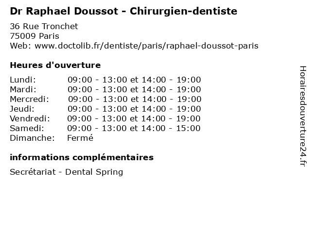 | Lundi | 09:00-13:00 et 14:00-19:00 |