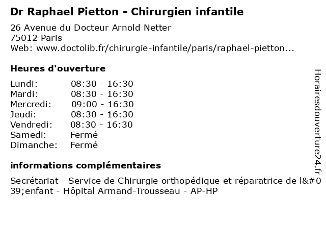 | 1 Dr Serge Zakine - Chirurgien infantile (Distance: 0,00 km) 26 Avenue du Docteur Arnold Netter, 75012 Paris chirurgien, docteur, dr, infantile, médecin, serge, zakine 2 Dr Raphael Vialle - Chirurgien infantile (Distance: 0,00 km) 26 Avenue du Docteur Arnold Netter, 75012 Paris chirurgien, docteur, dr, infantile, médecin, raphael, vialle 3 Dr Antoine Soldaini - Chirurgien infantile (Distance: 0,00 km) 26 Avenue du Docteur Arnold Netter, 75012 Paris antoine, chirurgien, docteur, dr, infantile, médecin, soldaini 4 Dr Amélie Rogier de Mare - Chirurgien infantile (Distance: 0,00 km) 26 Avenue du Docteur Arnold Netter, 75012 Paris amélie, chirurgien, de, docteur, dr, infantile, mare, médecin, rogier 5 Dr Mira Ramanoudjame - Chirurgien infantile (Distance: 0,00 km) 26 Avenue du Docteur Arnold Netter, 75012 Paris chirurgien, docteur, dr, infantile, mira, médecin, ramanoudjame 6 Dr Pierre Mary - Chirurgien infantile (Distance: 0,00 km) 26 Avenue du Docteur Arnold Netter, 75012 Paris chirurgien, docteur, dr, infantile, mary, médecin, pierre |