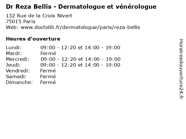 | Mercredi | 09:00-12:20 et 14:00-19:00 |