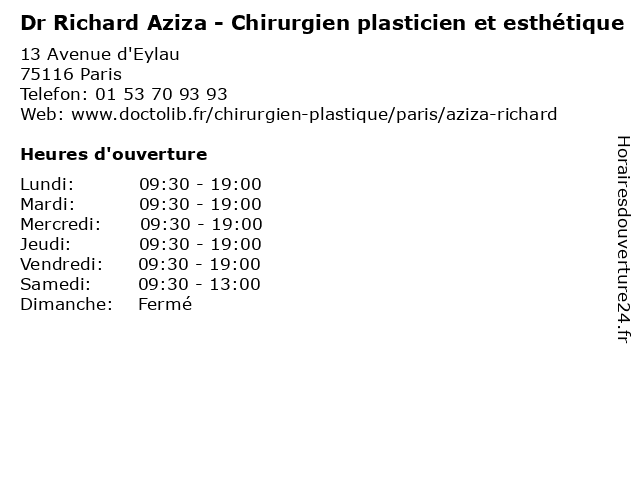 1 Dr Richard Aziza - Chirurgien plasticien et esthétique (Distance: 8,60 km) 97 Avenue Albert 1er, 92500 Rueil-Malmaison aziza, chirurgien, clinique, de, docteur, dr, esthétique, et, générale, les, martinets, nucleaire, plasticien, privée, radioactives, ramsay, richard, sante, santé 2 Dr Yael Berdah - Chirurgien plasticien et esthétique (Distance: 0,06 km) 21 Avenue d'Eylau, 75116 Paris berdah, chirurgien, chiurgie, dr, esthétique, et, general, plasticien, soins, yael 3 Richard De Soultrait Pierre-Louis (Distance: 0,07 km) 16 Rue Greuze, 75116 Paris louis, pierre, restaurants, richard, soultrait 4 Dr Pierre De Taddeo - Chirurgien plasticien et esthétique (Distance: 0,32 km) 51 Avenue Raymond Poincaré, 75116 Paris chirurgie, chirurgien, de, dr, esthétique, et, general, pierre, plasticien, soins, taddeo 5 Dr Camille Ozil - Chirurgien plasticien et esthétique (Distance: 0,52 km) 76 Avenue Raymond Poincaré, 75116 Paris camille, chirurgie, chirurgien, dr, esthétique, et, general, ozil, plasticien, soins 6 Dr Emmanuel Claoue - Chirurgien plasticien et esthétique (Distance: 1,23 km) 12 Avenue Alphand,, 75116 Paris chirurgien, claoue, dr, emmanuel, esthétique, et, médecins, plasticien, secrétariat |