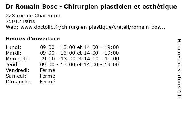 1 Dr Romain Bosc - Chirurgien plasticien et esthétique (Distance: 6,73 km) 51 Avenue du Maréchal de Lattre de Tassigny, 94000 Créteil bosc, chirurgien, consultation, docteur, dr, esthétique, et, med, medecine, medical, médecin, plasticien, romain, traitement 2 Dr Romain Mariauzouls Wolny - Médecin généraliste (Distance: 1,64 km) 24 rue Léon Frot, 75011 Paris consultation, docteur, dr, généraliste, mariauzouls, med, médecin, médecine, romain, traitement, wolny 3 Docteur Negro Donatella- Chirurgien Plasticien (Distance: 1,94 km) 8 Rue de la Folie-Regnault, 75011 Paris chirurgien, docteur, donatella, medecins, negro, plasticien, sante 4 Dr Michael Atlan - Chirurgien plasticien et esthétique (Distance: 2,61 km) 58 Avenue Gambetta, 75020 Paris anti, atlan, chirurgien, consultation, docteur, dr, esthétique, et, med, michael, morphologique, médecin, médecine, plasticien, secrétariat, traitement, âge 5 Dr Alexandre Bouhanna - Chirurgien plasticien et esthétique (Distance: 3,23 km) 22 Rue Louis Besquel, 94300 Vincennes alexandre, bouhanna, chirurgie, chirurgien, dr, esthétique, et, general, plasticien, soins 6 Dr Nicolas Robert - Chirurgien plasticien et esthétique (Distance: 3,72 km) 41 Avenue Georges Bernanos, 75005 Paris chirurgien, dr, esthétique, et, médecins, nicolas, plasticien, robert, secrétariat |