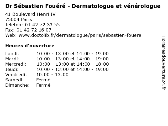 1 Dr Noémie Finkel-Tapiero - Dermatologue et vénérologue (Distance: 0,19 km) 31 Rue du Petit Musc, 75004 Paris consultation, dermatologue, docteur, dr, et, finkel, med, médecin, médecine, noémie, secrétariat, tapiero, traitement, vénérologue 2 Sébastien Tyrode - Ostéopathe (Distance: 0,26 km) 56-60 Rue Saint-Antoine, 75004 Paris osteo, osteopathe, ostéopathe, sante, sebastien, soins, sébastien, tyrode 3 Dr David Farhi - Dermatologue (Distance: 0,58 km) 8 Rue Saint-gilles, 75003 Paris boutons, david, dermatologue, docteur, dr, farhi, liason, venerologue 4 Laboratoire d'Analyses Médicales Saint-Sébastien (Distance: 0,91 km) 2 Boulevard des Filles du Calvaire, 75003 Paris analyse, bioclinic, centre, d'analyses, laboratoire, medical, médicales, saint, sébastien 5 Dr Sébastien Barbaroux - Médecin généraliste (Distance: 0,92 km) 5 Rue Saint-Sébastien, 75011 Paris barbaroux, docteur, dr, generaliste, généraliste, medical, médecin, soin, sébastien 6 École élémentaire application St Sébastien (Distance: 0,96 km) 24 Saint Sébastien, 75011 Paris application, cours, servicios, st, sébastien, école, élémentaire |