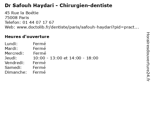 | Jeudi | 10:00-13:00 et 14:00-18:00 |