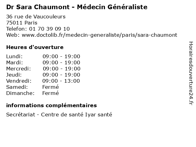 Termes de recherche pour Dr Sara Chaumont - Médecin Généraliste:chaumont, paris, centre, santé, généraliste, médecin, dr, sara, 75011, lyar |