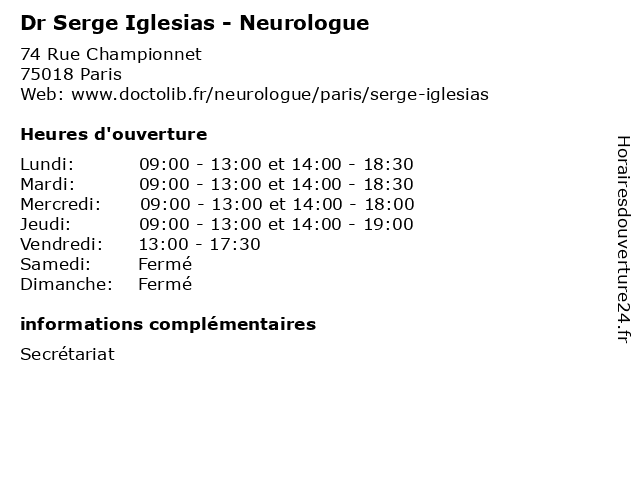 | Lundi | 09:00-13:00 et 14:00-18:30 |