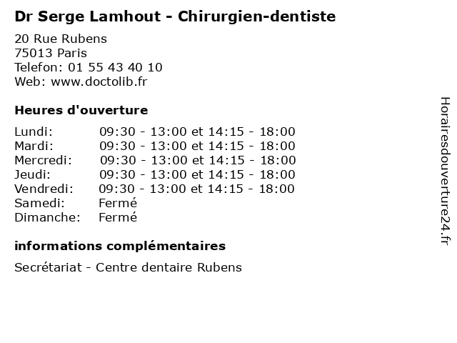 | Lundi | 09:30-13:00 et 14:15-18:00 |
