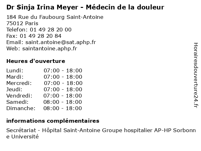 1 Dr Andrea Passard - Médecin de la douleur (Distance: 0,00 km) 184 Rue du Faubourg Saint-Antoine, 75012 Paris andrea, consultation, de, docteur, douleur, dr, la, med, medecine, medical, médecin, passard, traitement 2 Dr Julien Guerin - Médecin de la douleur (Distance: 0,00 km) 184 Rue du Faubourg Saint-Antoine, 75012 Paris consultation, de, docteur, douleur, dr, guerin, julien, la, med, medecine, medical, médecin, traitement 3 Dr Dominique Perocheau - Médecin de la douleur (Distance: 0,00 km) 184 Rue du Faubourg Saint-Antoine, 75012 Paris consultation, de, docteur, dominique, douleur, dr, la, med, medecine, medical, médecin, perocheau, traitement 5 Pharmacie Israel Meyer (Distance: 0,96 km) 81 Rue de la Roquette, 75011 Paris israel, meyer, médicaments, pharmacie, santé, service 6 Pharmacie Meyer Poinsot (Distance: 1,62 km) 37 Rue de Turenne, 75003 Paris meyer, médicaments, pharmacie, poinsot, santé, service |