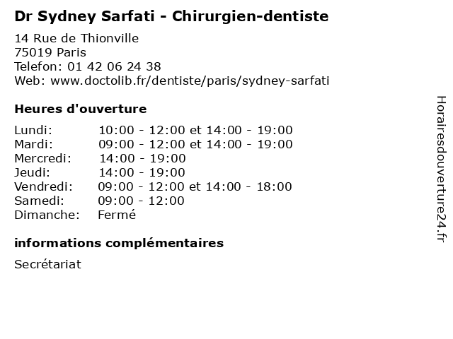 Lundi | 10:00-12:00 et 14:00-19:00 |