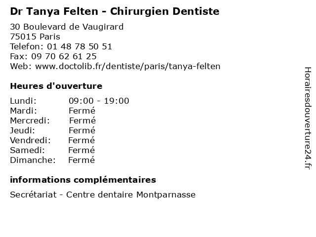 Termes de recherche pour Dr Tanya Felten - Chirurgien Dentiste:paris, centre, montparnasse, dentaire, dr, dentiste, chirurgien, tanya, felten, 75015, tznyz |