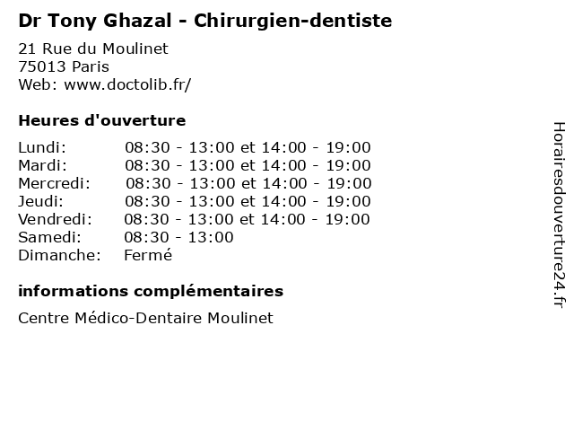 | Lundi | 08:30-13:00 et 14:00-19:00 |